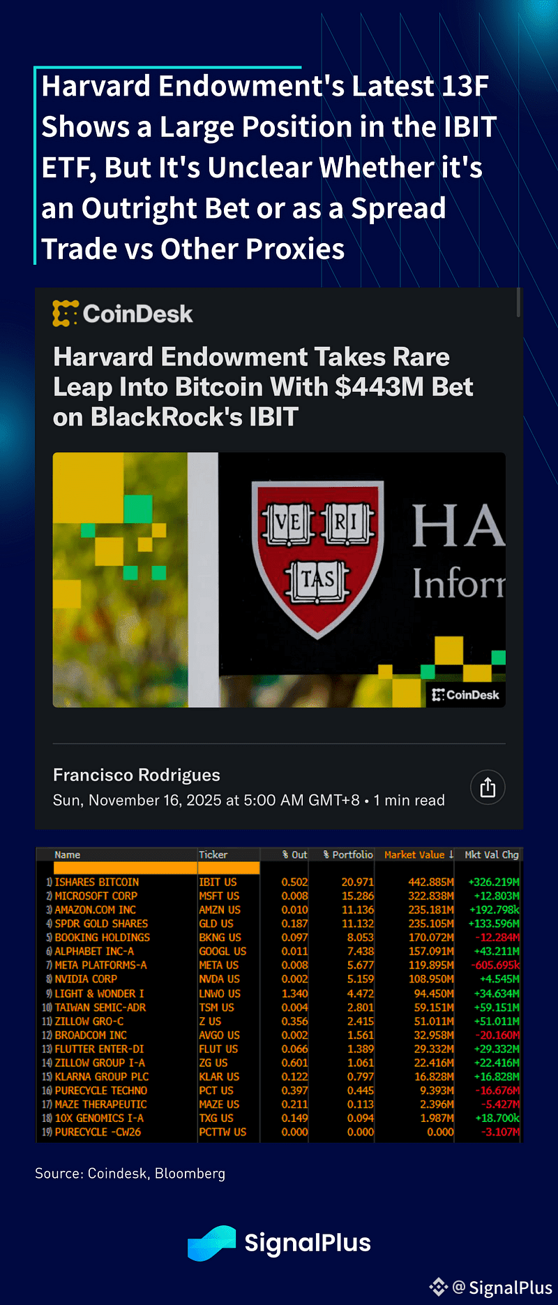 Amidst all the doom and gloom, have there been any good news out of the space as of late? Outside of the recent Square announcement that they have recently started to accept Bitcoin payments for their merchants, the latest 13F filings have also shown that the Harvard Endowment ($57B AUM) now has a $443M position in IBIT, their largest single equity holding in the portfolio. But before everyone gets too excited, it is unclear that if the position is an outright long or as a spread/arbitrage trade vs DATs or other crypto proxy. We lean towards the latter, but it’s still good to see that TradFi real money accounts are at least becoming more active participants in this space, even if it’s not just a pure long exposure.