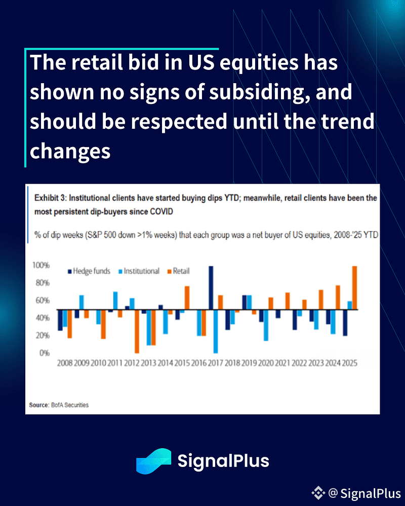 The retail bid in US equities has shown no signs of subsiding, and should be respected until the trend changes