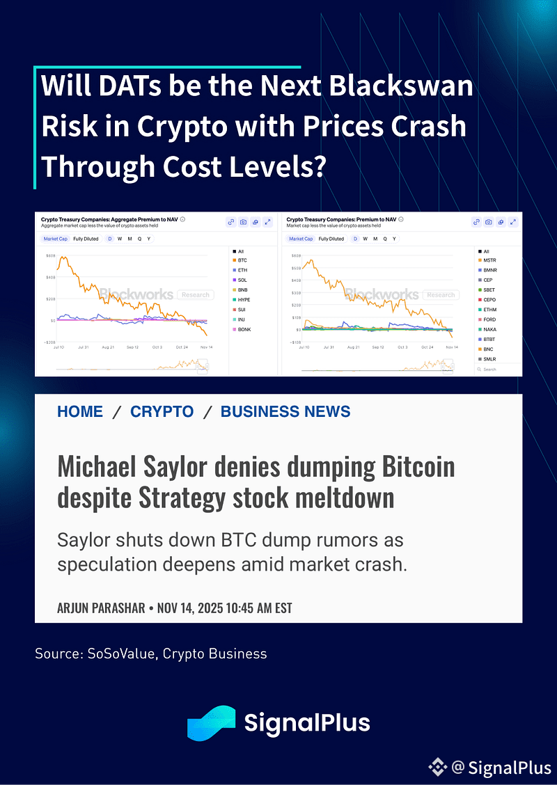 The persistent sales have led to a collapse in DAT premium to negative territory, sparking concerns of treasury sales as companies dispose of assets to support the falling equity market cap. MSTR is obviously the elephant in the room, though Saylor was quick to publicly deny any sale shennigans, but the final verdict might be yet to be seen.