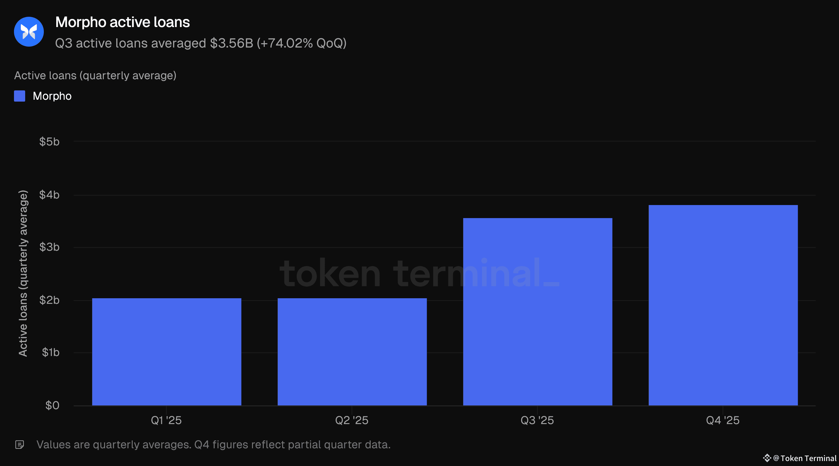 Active loans: $3.56B (+74.02% QoQ)