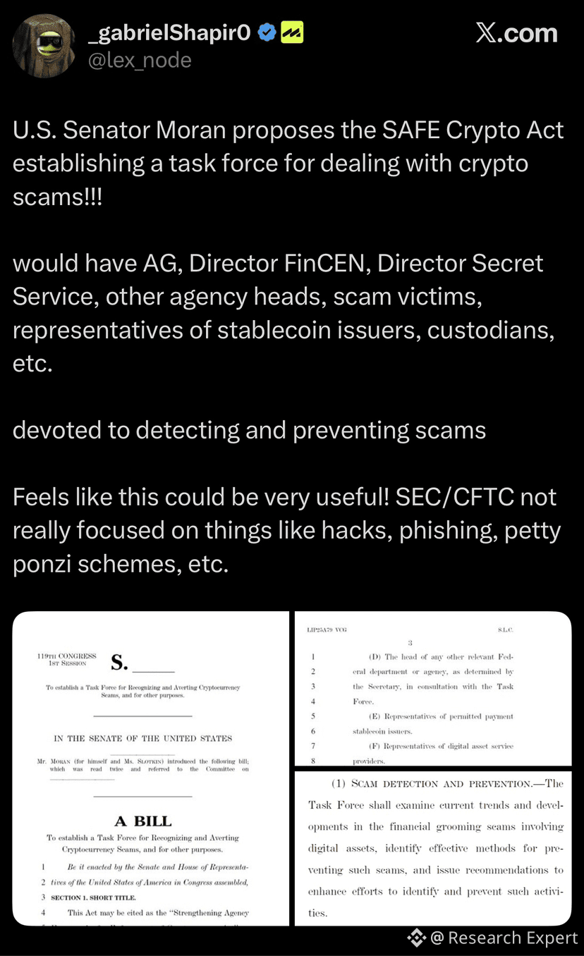 Senators Elissa Slotkin (D-MI) and Jerry Moran (R-KS) are listed as the bill’s proponents. The measure appears in Congress under a title that would establish a “Task Force for Recognizing and Averting Cryptocurrency Scams,” and is referenced by bill number S.3428 in congressional records. As of Dec. 17, 2025, the full legislative text had not been posted on the Congressional site.