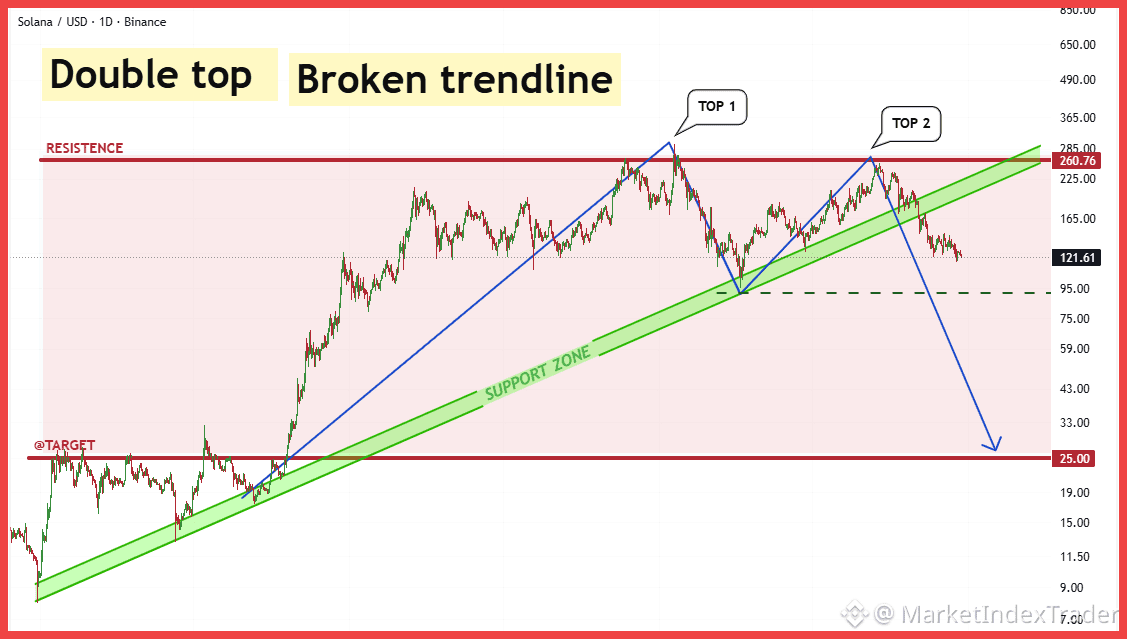 This is a public service announcement: Please be extremely cautious with $SOL (Solana). The technical chart structure is screaming danger and potential capitulation.