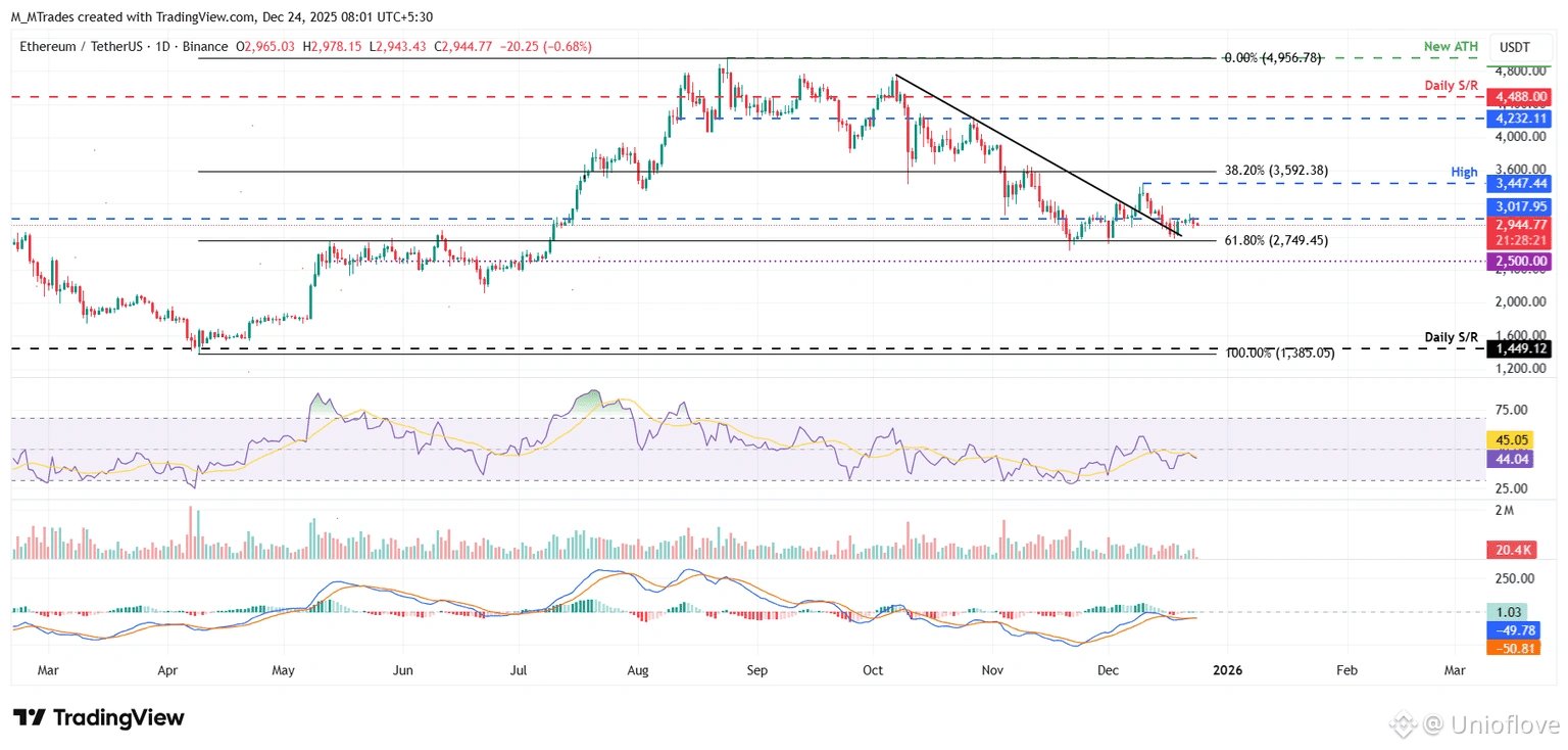 Ethereum price was rejected from the daily resistance level at $3,017 on Monday and declined 1.48% the next day. As of Wednesday, ETH is trading down at $2,944.