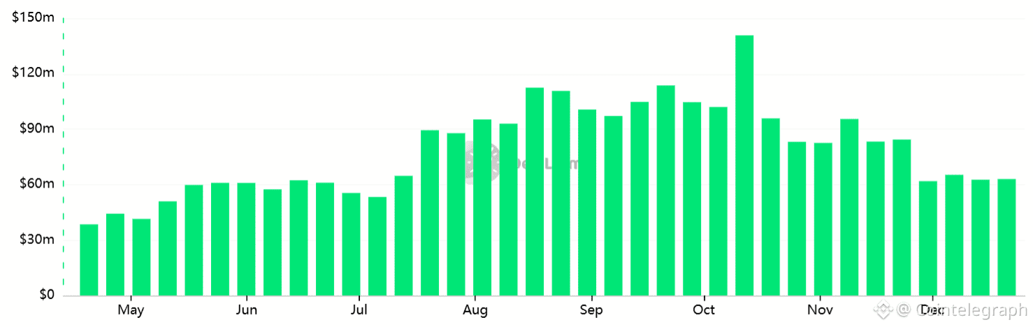 Fees generated by Ethereum DApps have remained relatively flat over the past four weeks, although well below the $140 million peak recorded in October. The data shows that activity on the Ethereum network is stagnant, but far from collapsing.