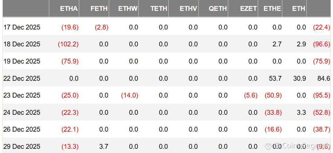 The $307 million in daily net outflows from Ether ETFs since Dec. 17 may not be materially significant, as it represents less than 3% of total assets, but the lack of demand still weighs on investor sentiment. Even professional traders can turn skeptical after two weeks of repeated failures by ETH to hold above the $3,000 level.