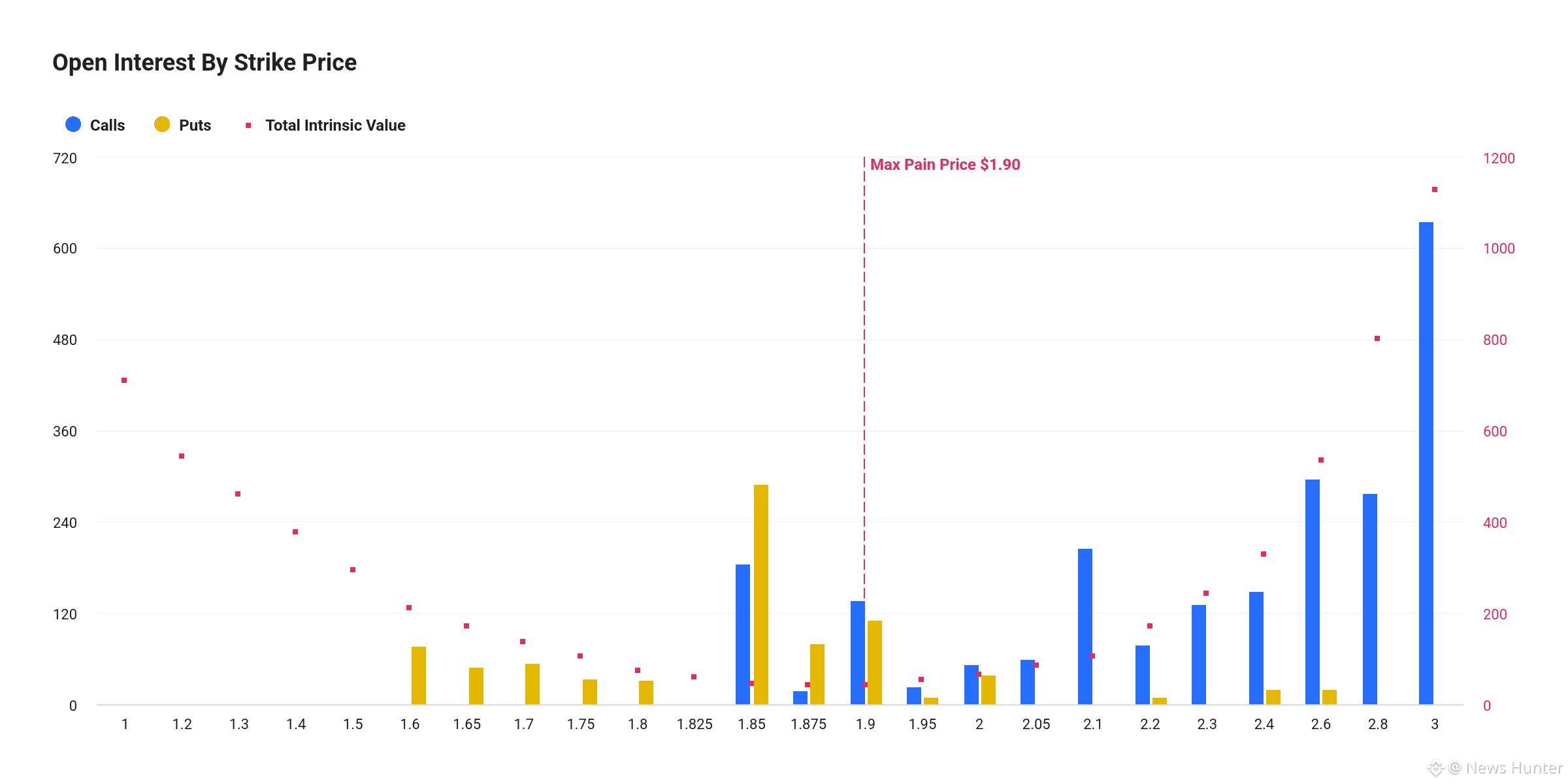 According to Deribit data, $XRP options worth millions expired today. The put-call ratio was 0.78, and the max pain price was at $1.90.