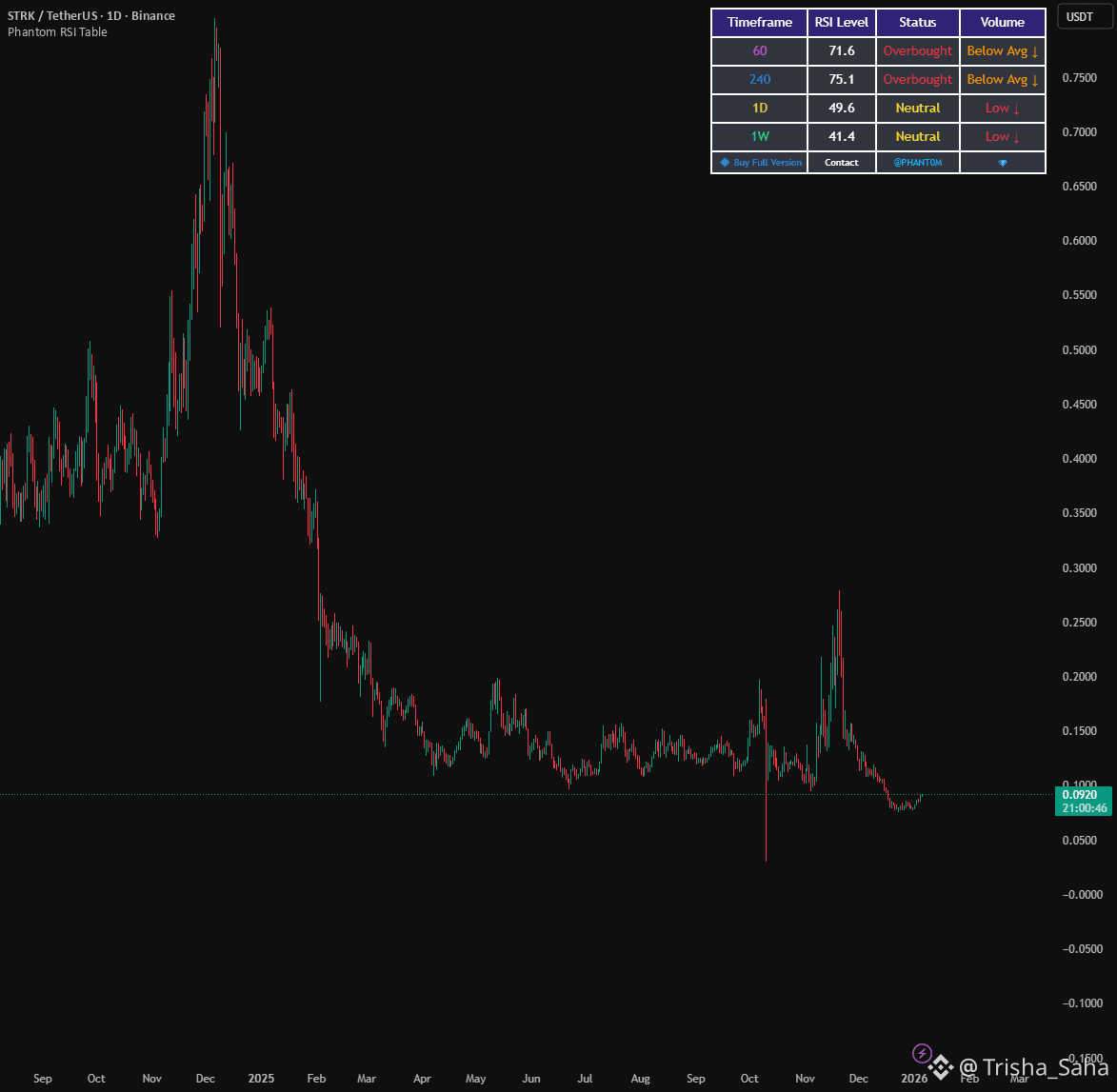 Under the Radar: While BTC and ETH are heating up (RSI 60+), STRK is dead neutral. It hasn't even started its run yet.