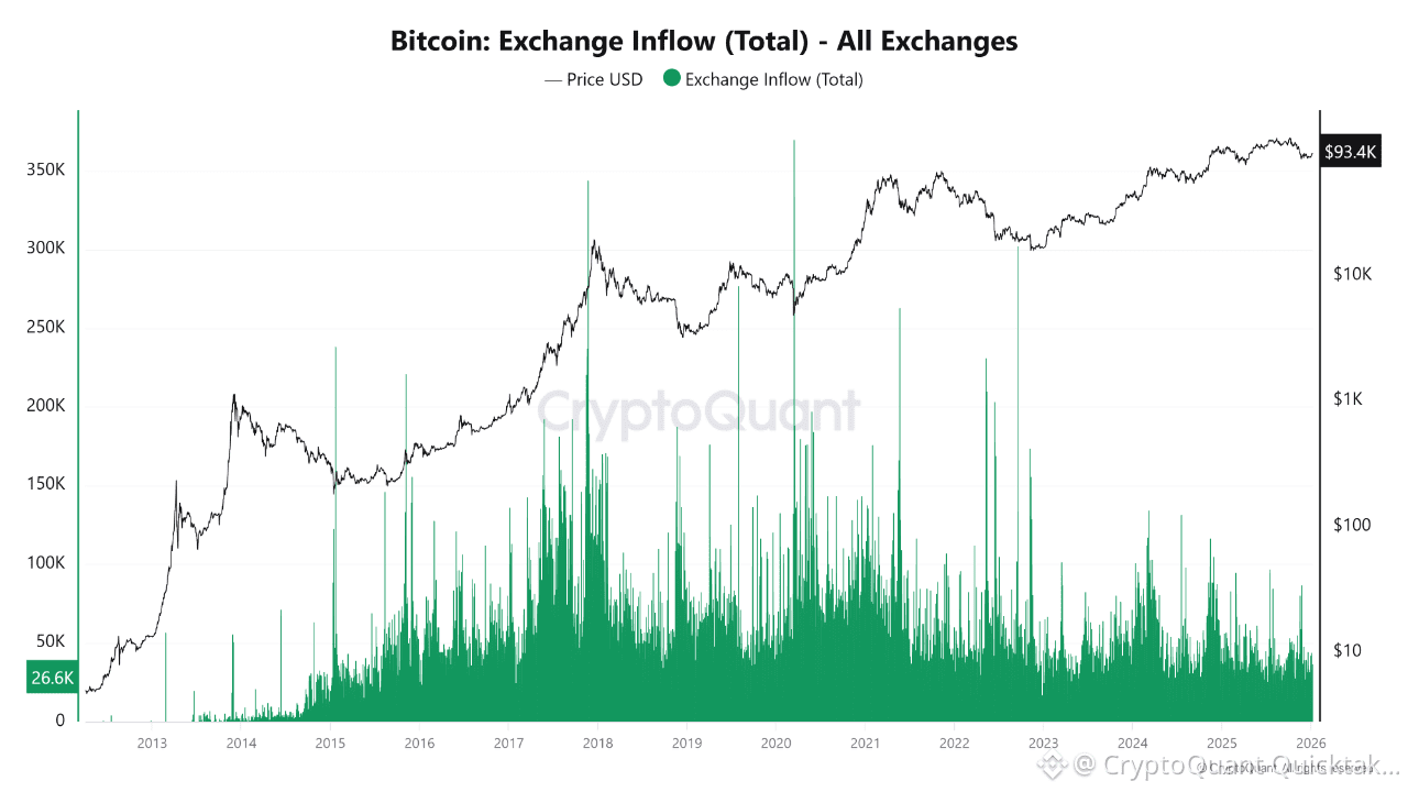 Another important indicator is Exchange Inflow (Total) – All Exchanges, which tracks the total amount of crypto assets flowing into exchanges. Rising inflows typically signal increasing sell-side pressure, as assets are moved to exchanges in preparation for liquidation. Conversely, subdued inflows suggest that actual selling pressure is limited, even if prices are volatile.