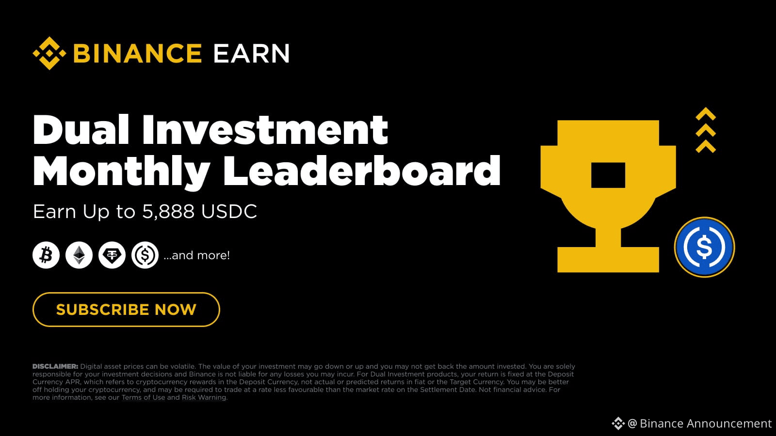 Binance Earn presents to you the January Monthly Leaderboard Program for all Dual Investment users, with up to 5,888 USDC in rewards.