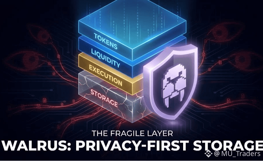 you probably spend most of your time thinking about tokens, liquidity, and execution, while assuming storage is already solved. That quiet assumption is risky. Walrus forces you to notice that much of crypto still depends on storage models that leak metadata, expose usage patterns, and quietly reintroduce trust.