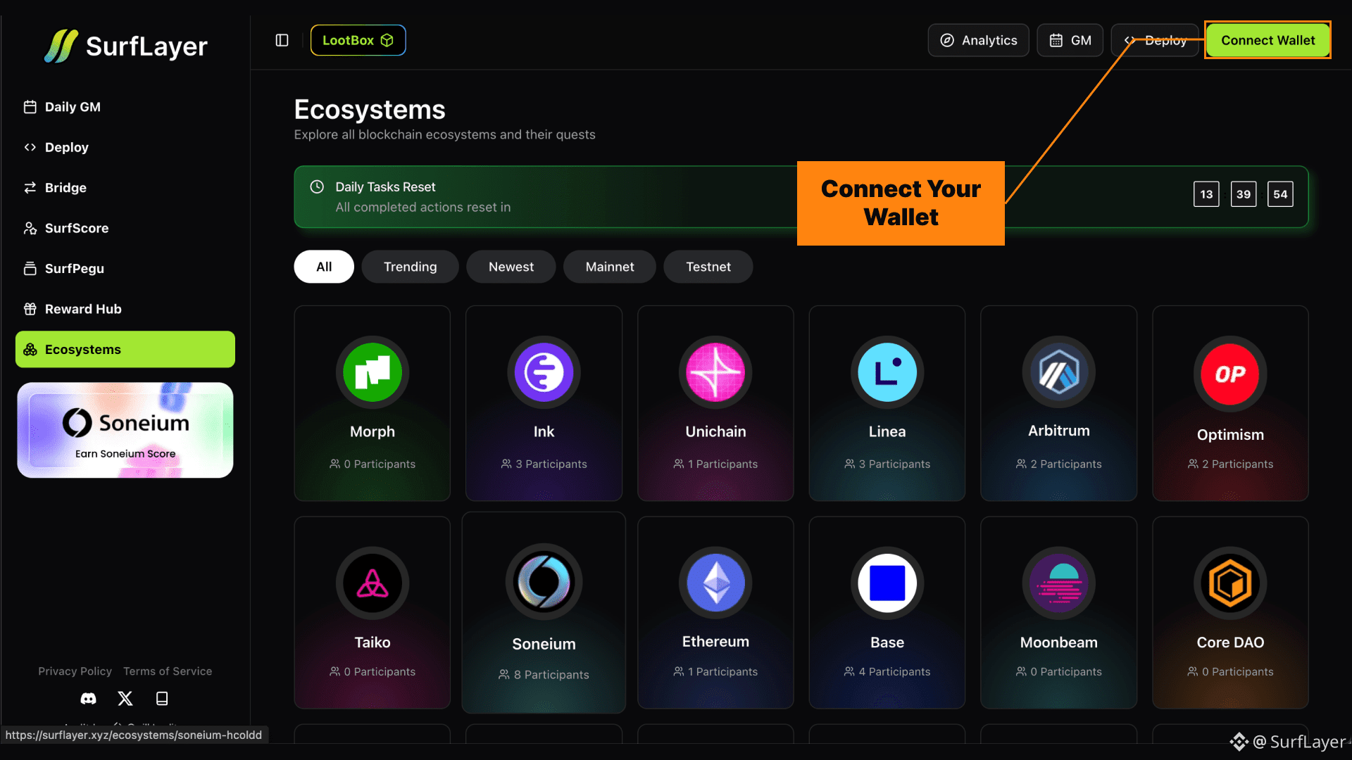 By completing all tasks within an ecosystem, users can earn bonus SurfPoint, rewarding genuine on-chain exploration and consistent participation.