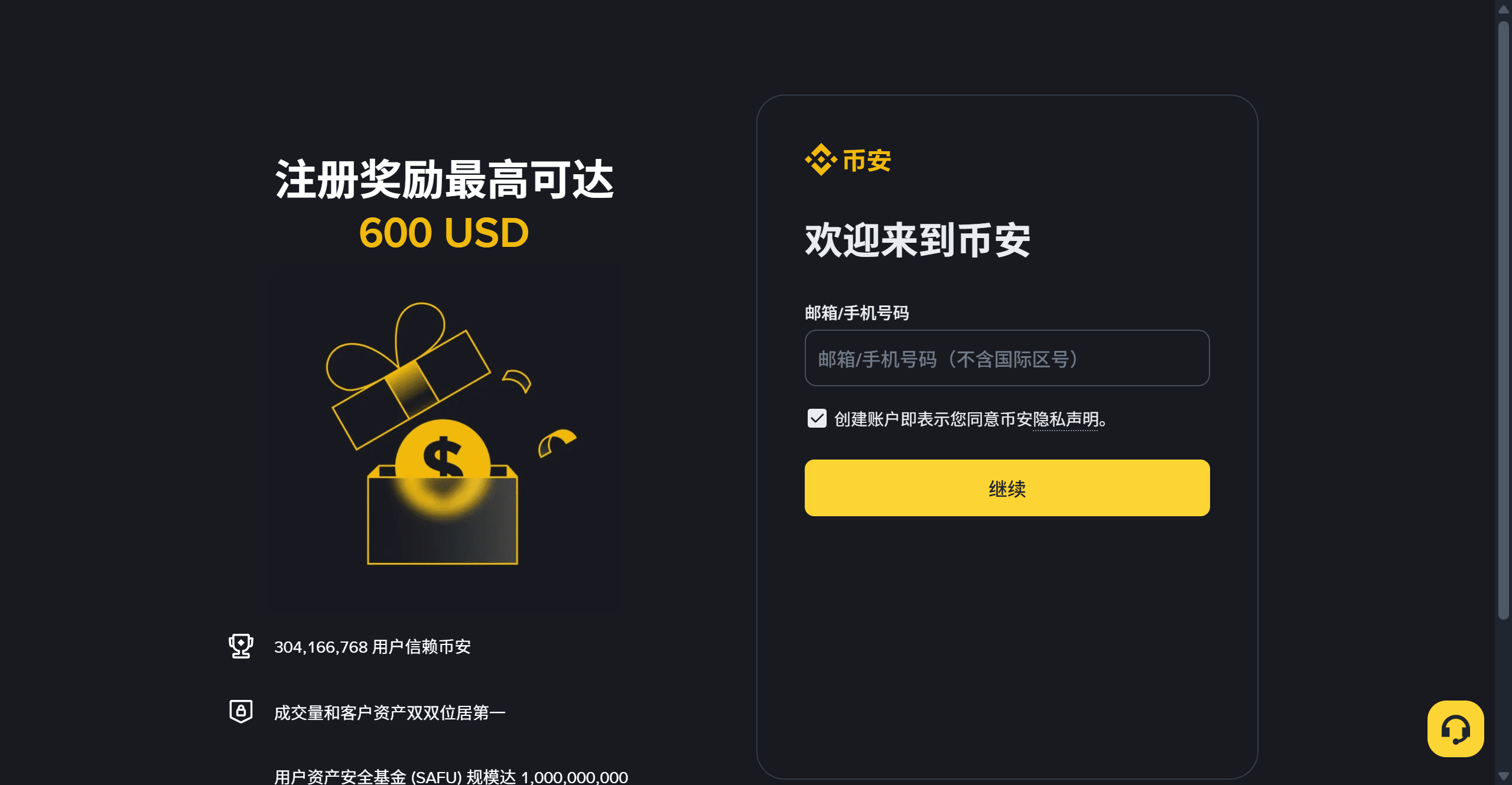 1. First step, click here to open the Binance registration page, the registration page is shown in the figure below: