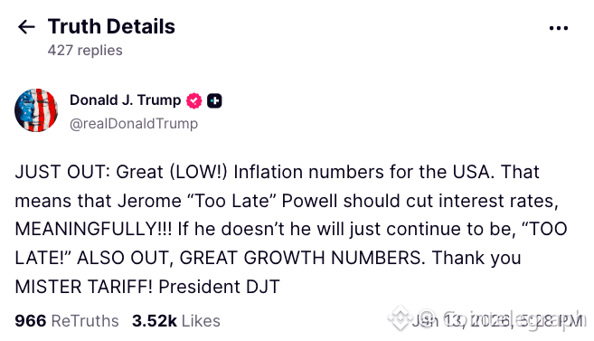 After CPI, Trump reiterated his request for lower rates — something that would notionally have a positive impact on liquidity flowing into risk assets and crypto.