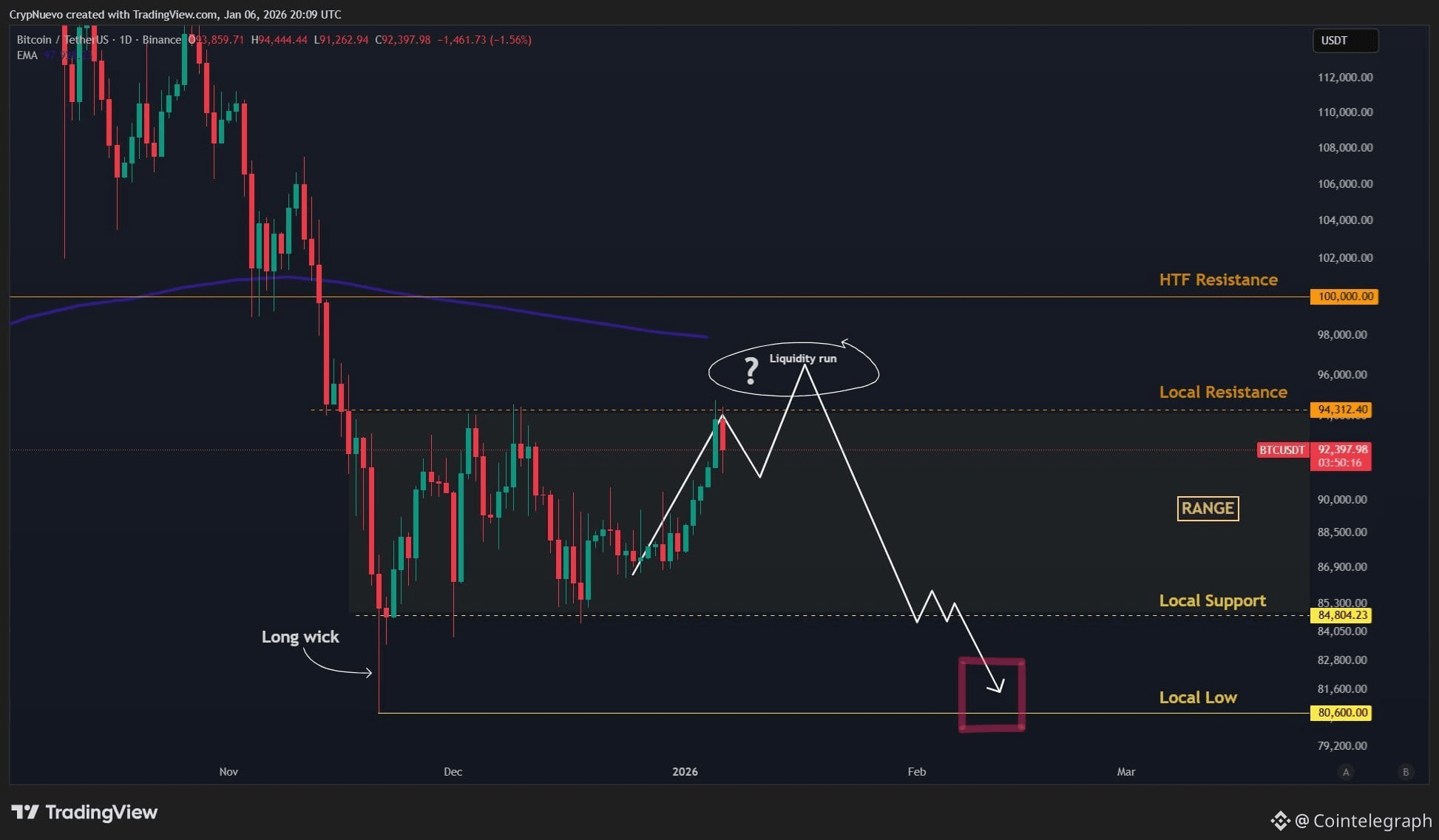 BTC/USDT one-day chart. Source: CrypNuevo/X