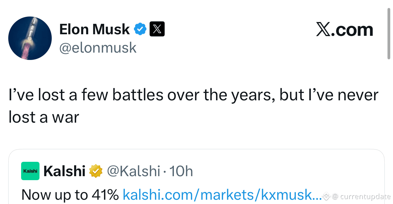 ⢠Elon replied directly to Kalshi on X:āØāIāve lost a few battles over the years, but Iāve never lost a warā š