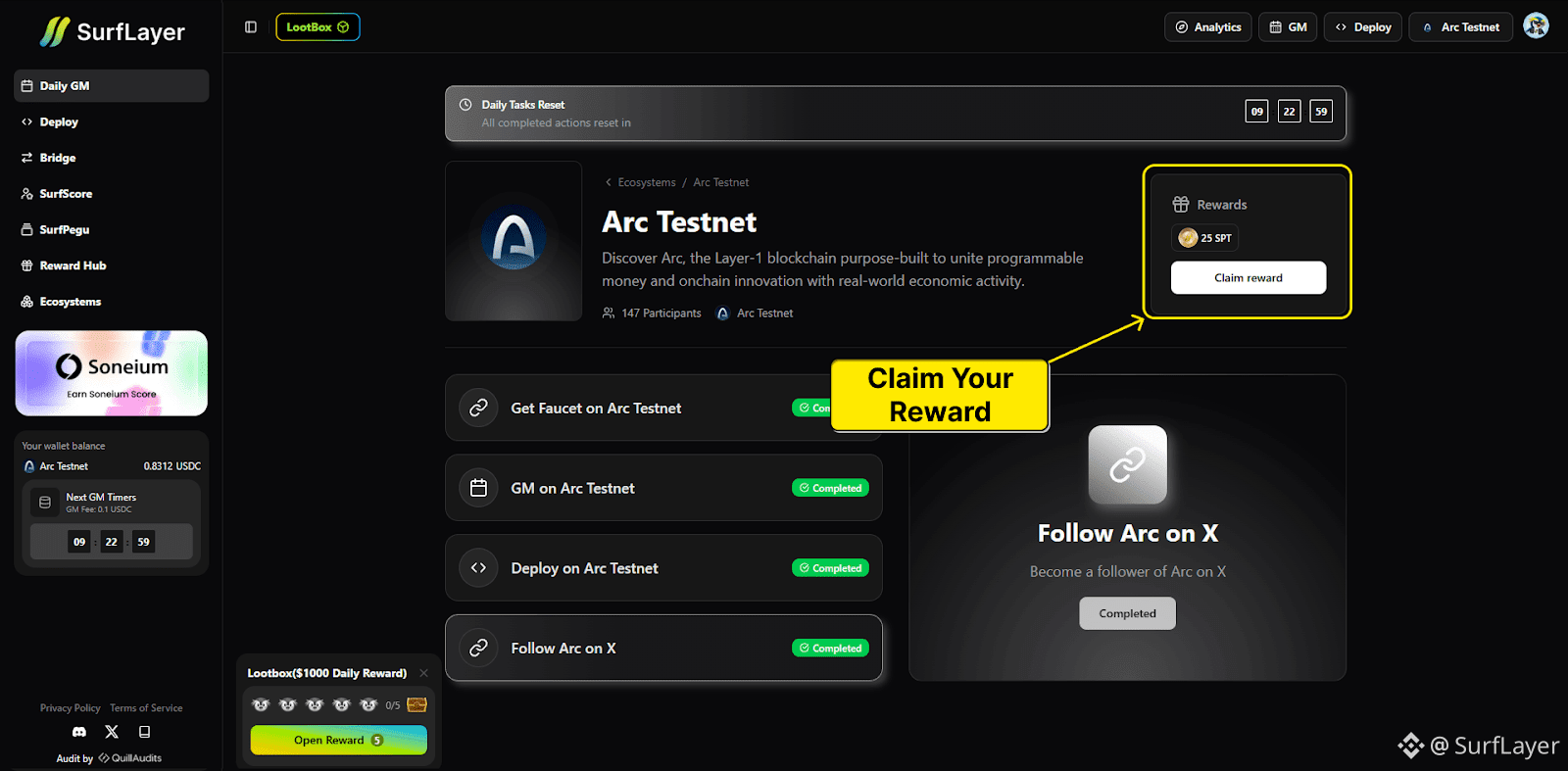 Start exploring the ARC Testnet today and experience how SurfLayer transforms on-chain participation into a guided and rewarding journey.