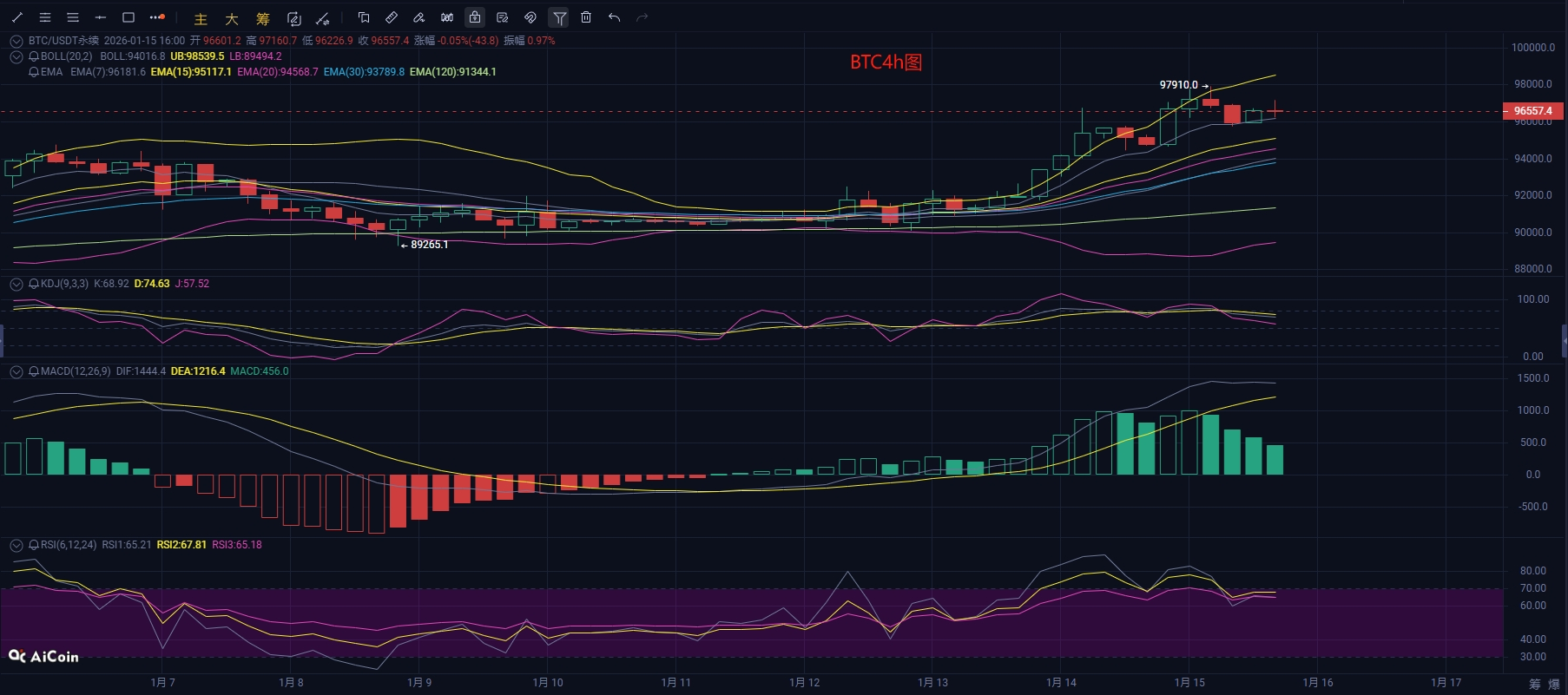 As of January 15, 2026, the total market capitalization of cryptocurrencies worldwide is approximately $3.3 trillion to $3.36 trillion, with a slight increase of 0.4% to 3% over the past 24 hours. Bitcoin's dominance rate is between 57% and 60%, indicating that funds are still primarily concentrated in Bitcoin, while altcoins show mixed performance. Overall market sentiment has shifted from neutral to greedy, with the Fear and Greed Index rising to 61, marking the first time in three months that it has entered the greed zone. Bitcoin's price fluctuates in the range of $96,000 to $98,000, with a 24-hour increase of about 1.4% to 1.7%; Ethereum remains stable at $3,200 to $3,400, with an increase of 0.1% to 0.5%; other major cryptocurrencies like Solana (approximately $145), Binance Coin (approximately $938), and XRP (approximately $2.10) experience mixed changes. Privacy coins like DASH (+36.8%), ZEC (+4.2%), and ICP (+21.9%) lead the gains, reflecting a rising demand for privacy under regulatory pressure.