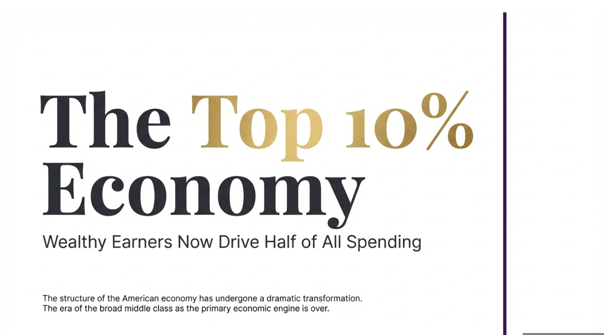 Just 37% of Spending: The bottom 80% of earners, the traditional working and middle class—now represent only ~37% of total consumer expenditures.