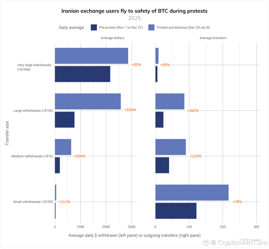 “This surge suggests Iranians are taking possession of Bitcoin at a markedly higher rate during protests than they were beforehand.”