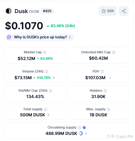 In mid January 2026 the numbers around DUSK look familiar to trader who have seen this movie before. Price hovering in high single cent range volume alive enough to remind you attention can come back fast. Circulating supply sitting just under 487M with a much higher max supply above it. That create that mix of liquidity and sensitivity traders recognize instantly. None of this predict future. It just describe terrain. And terrain matter more than prophecy.