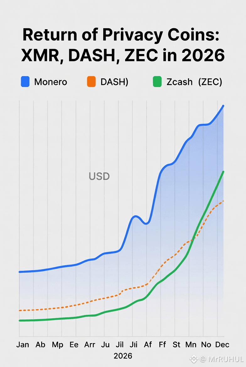 It’s 2026, and privacy coins are back in the spotlight. Not long ago, Monero, $DASH , and Zcash felt like old news—almost forgotten. Now? They’re everywhere. You see them trending on Twitter, popping up in Telegram chats, and sparking heated debates. So, what flipped the script? Well, the market’s gotten tougher, regulations are closing in, and a new crowd actually cares about keeping their finances private.