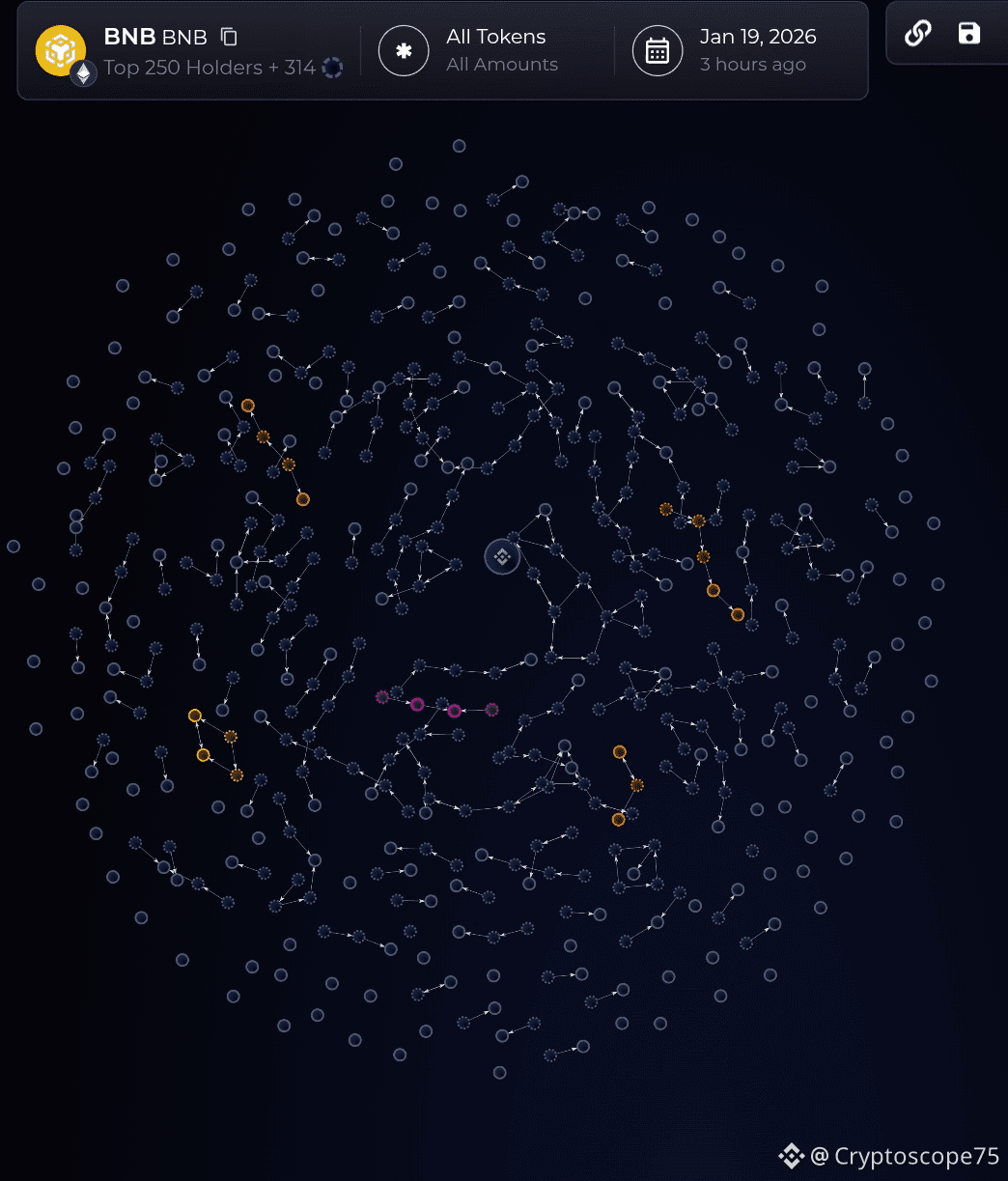 The first image represents BNB holder flow and wallet interaction mapping among top holders.
