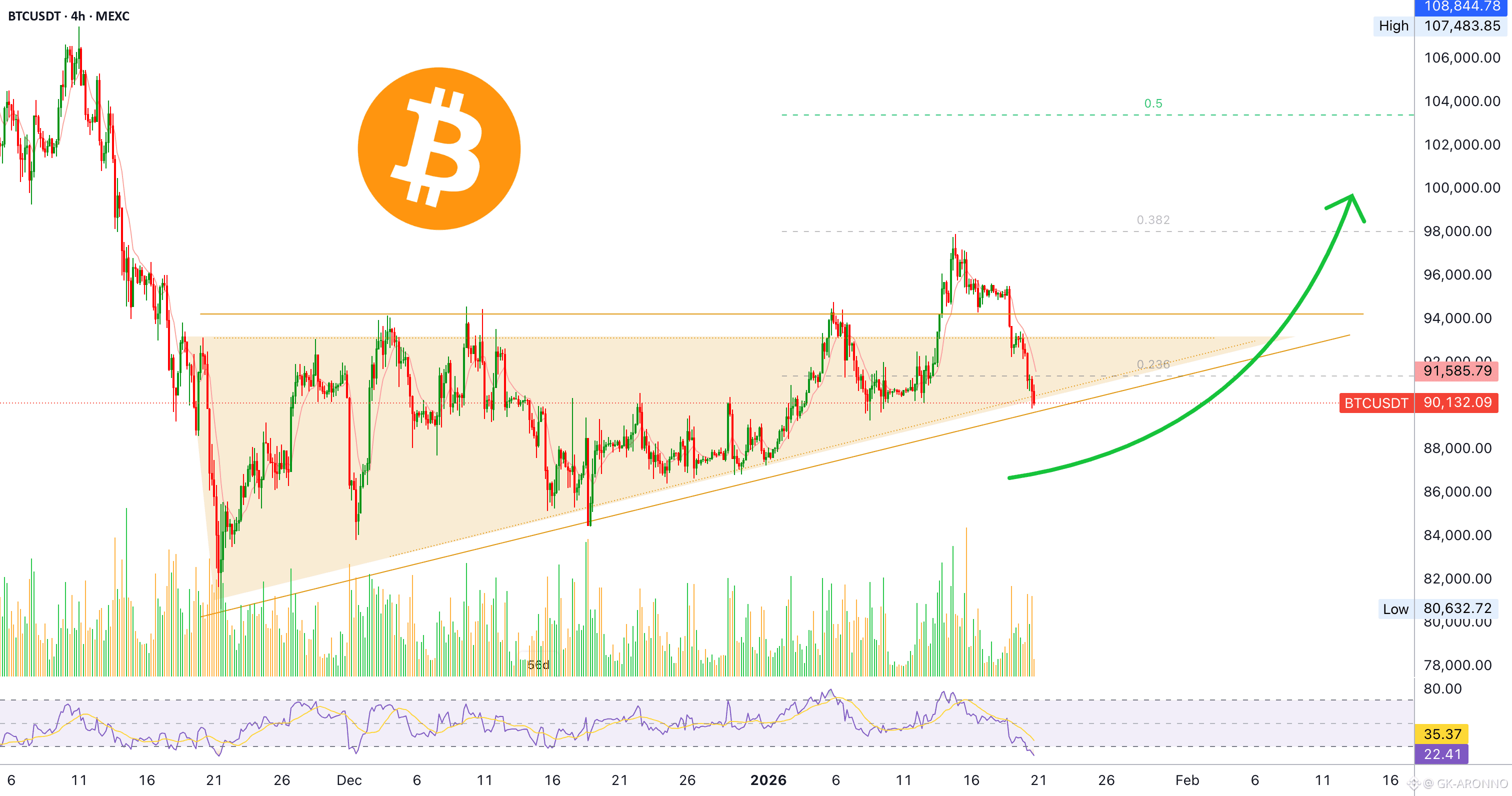 This chart shows Bitcoin on the 4H timeframe including the RSI.
