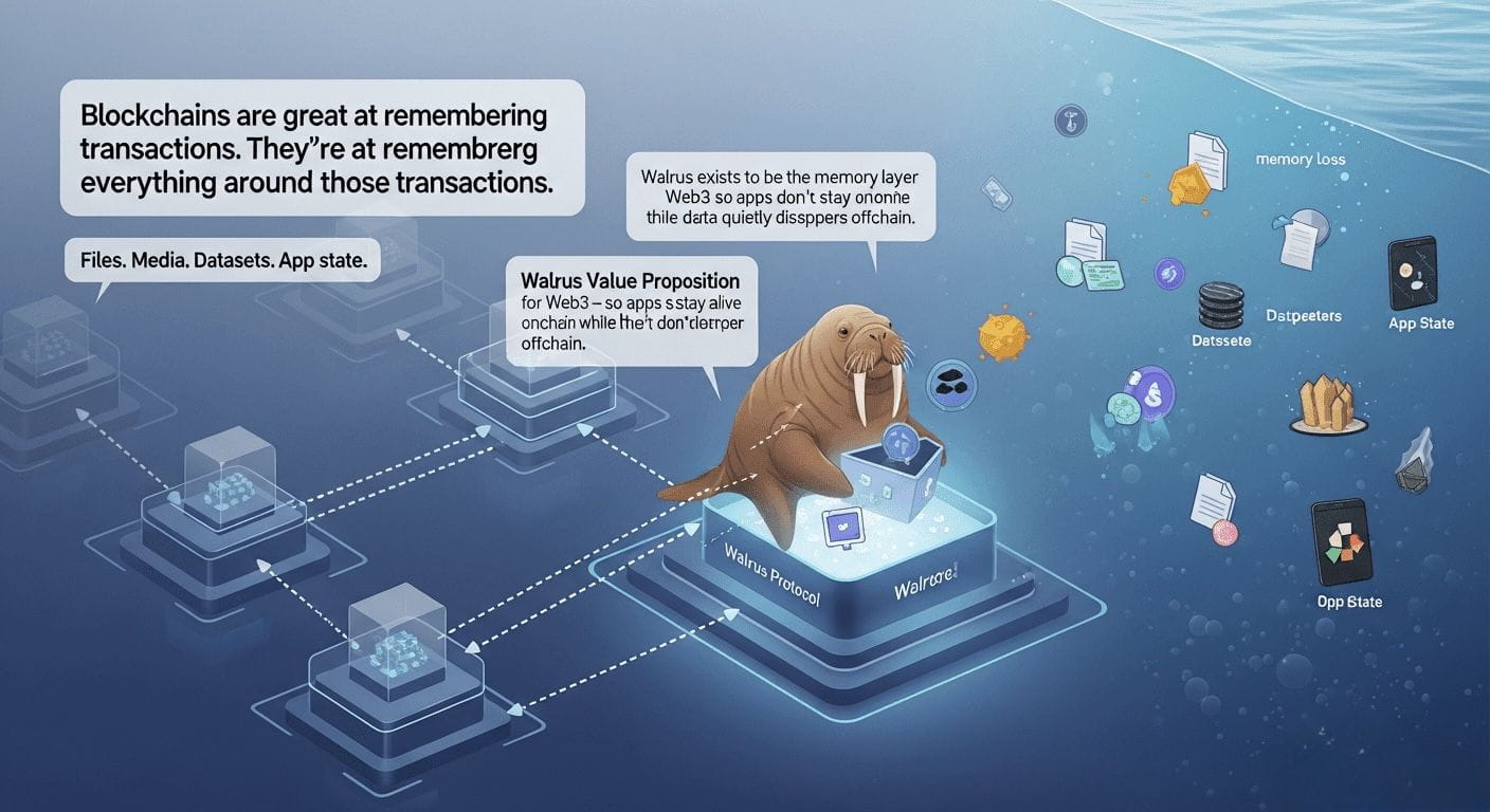 Walrus Protocol was not created to chase a trend. It emerged from a problem that most Web3 systems try to ignore because it is uncomfortable and difficult to solve. Blockchains are excellent at proving actions, but they are surprisingly bad at remembering everything that gives those actions meaning.