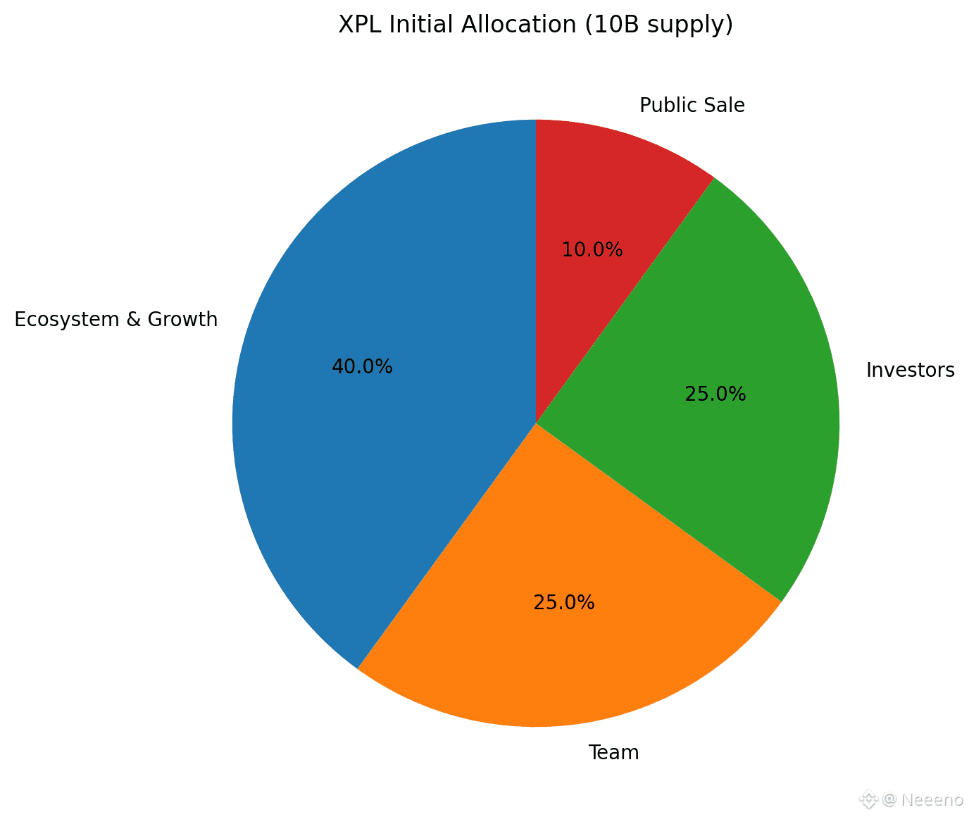 The distribution details matter because they shape how fear behaves in the market. Plasma documents 40% allocated to “Ecosystem and Growth,” with 8% unlocked immediately at mainnet beta launch and the remaining portion unlocking monthly over three years. It also assigns 25% each to team and investors on multi-year schedules, and 10% to a public sale with different unlock treatment depending on jurisdiction. The result is not just a chart of percentages; it’s a map of when supply pressure can realistically arrive, when builders might feel supported, and when early participants might feel betrayed or protected by the rules that were written before the token had a price.