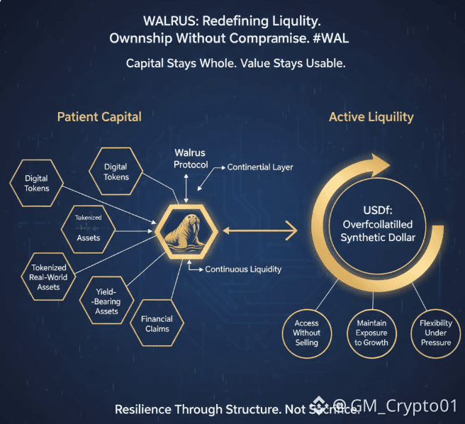 In the Walrus framework, assets are not viewed as static holdings waiting for appreciation, nor as expendable inputs for short term leverage. They are persistent sources of value that can support liquidity without being consumed by it. By enabling a universal collateralization model, Walrus allows a wide spectrum of liquid assets, including digital tokens and tokenized real-world assets, to be deposited as collateral without forcing liquidation. Ownership remains intact. Exposure remains continuous. What changes is the rigidity that once defined access.