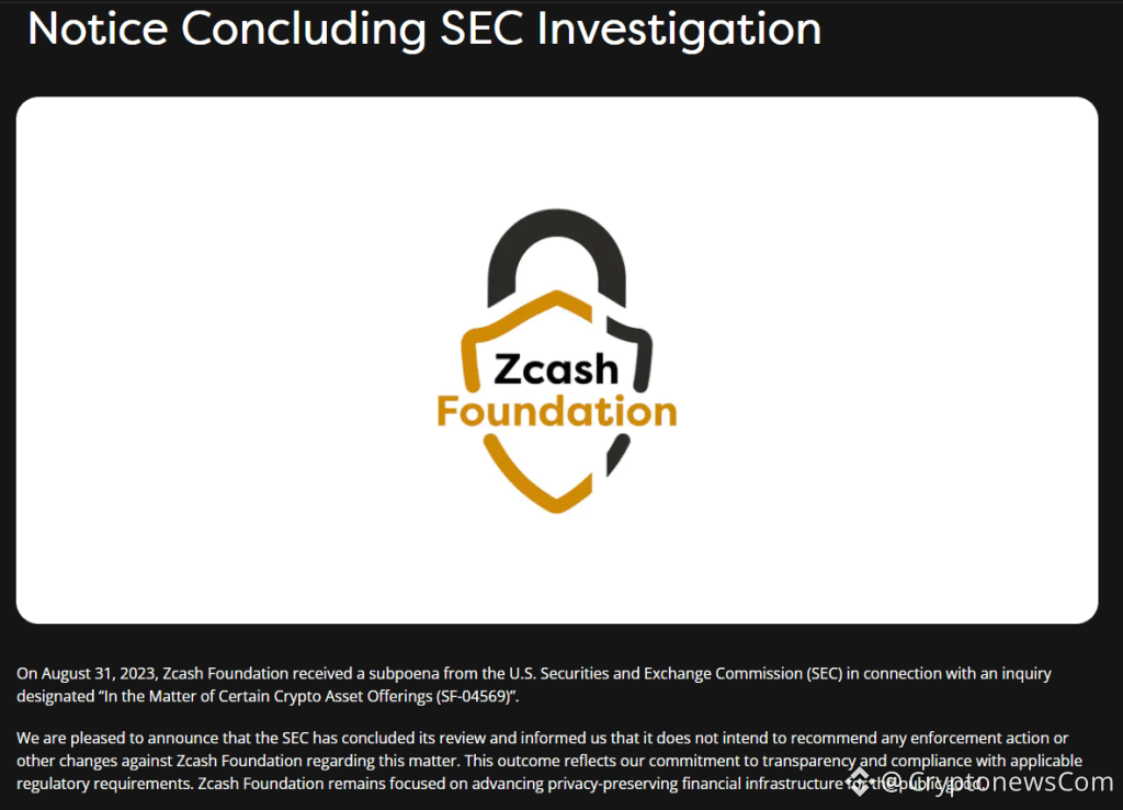 The SEC closed its two-year investigation into the Zcash Foundation on January 14, 2026, without enforcement action. The probe, initiated via subpoena in August 2023, examined whether ZEC constituted a securities offering. The closure aligns with broader SEC pullback on crypto enforcement under Chair Paul Atkins.