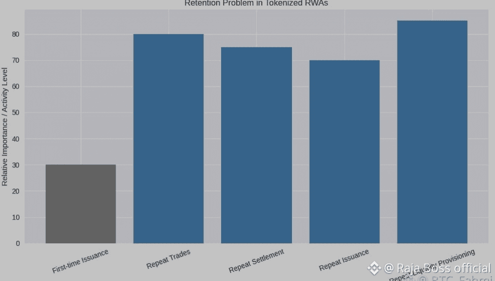 This is where the Retention Problem becomes the silent killer in tokenized RWAs. Traders obsess over listings. Investors obsess over partnerships. But markets do not survive on first-time issuance. They survive on repeat behavior: repeat trades, repeat settlement, repeat issuance, repeat liquidity provisioning. Retention is what turns an experiment into infrastructure.