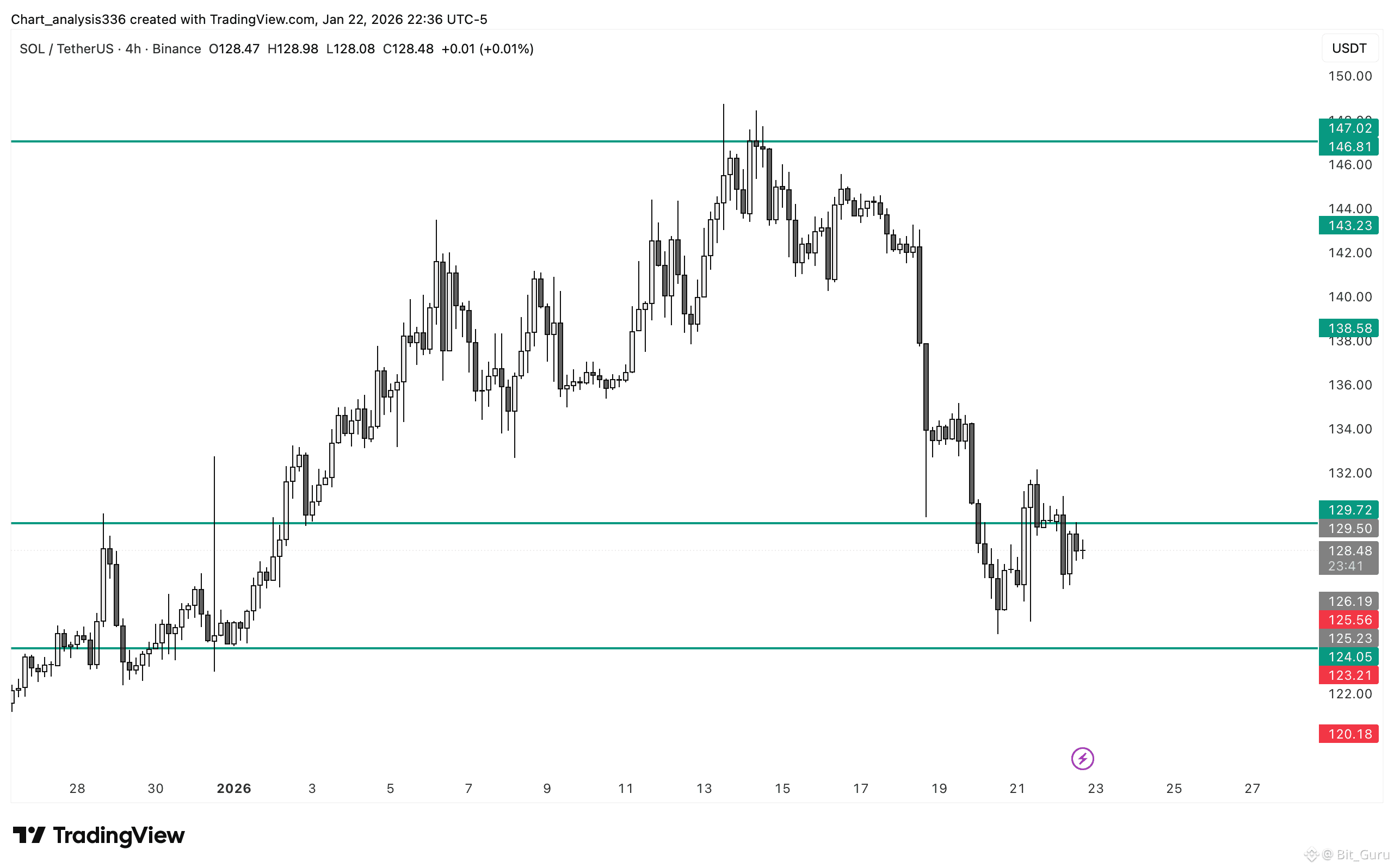 However, if SOL loses 124 with strong volume, downside risk opens toward 120–118, which is the next major support area from the broader structure. That level would likely attract stronger buyers again, but momentum would stay weak until SOL reclaims 130–132 decisively.