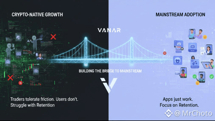 That is the fundamental issue Vanar is dealing with when attempting to get Web3 adoption into mainstream markets. It's not that Vanar lacks vision, but rather that the battlefield of mainstream adoption differs greatly from that of crypto-native growth. Traders are able to put up with friction. Regular users don't. Tokenomics is readable by investors. The typical user only wants the program to function.