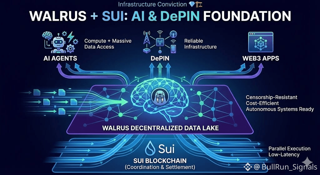 AI agents need three things: compute, coordination, and massive, reliable data access. Walrus is positioning itself as a decentralized data lake — censorship-resistant, cost-efficient, and fast enough for autonomous systems. 🧠⚡ This is why Walrus is not “just storage.” It is a foundational layer for AI-native applications that cannot rely on centralized cloud providers.