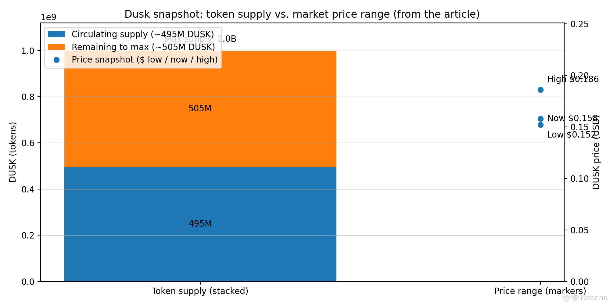Right now, the market data around DUSK tells a story of a token that has become very liquid again—whether for the “right” reasons or not. As of today (January 24, 2026), DUSK is trading around $0.158 with an intraday range roughly between $0.152 and $0.186. Public trackers list circulating supply around ~495 million DUSK out of a 1 billion max supply, with a market cap in the neighborhood of ~$79M and 24-hour volume that has recently printed in the tens of millions of dollars.That liquidity is a kind of stress test of its own. When volume spikes, systems don’t just get used more—they get used more carelessly. That is when oracle assumptions get punished.