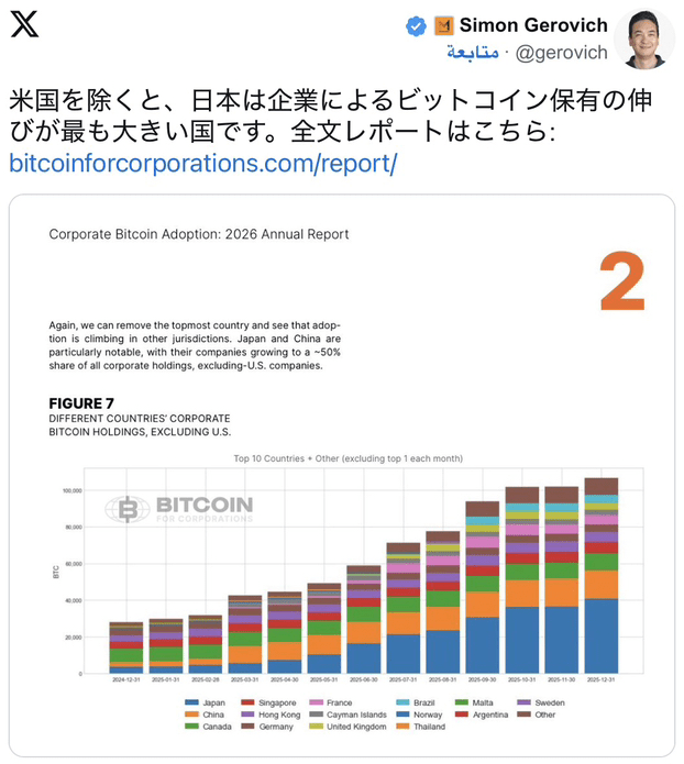 Corporate holdings of Bitcoin in Japan have surged from nearly zero to tens of thousands.