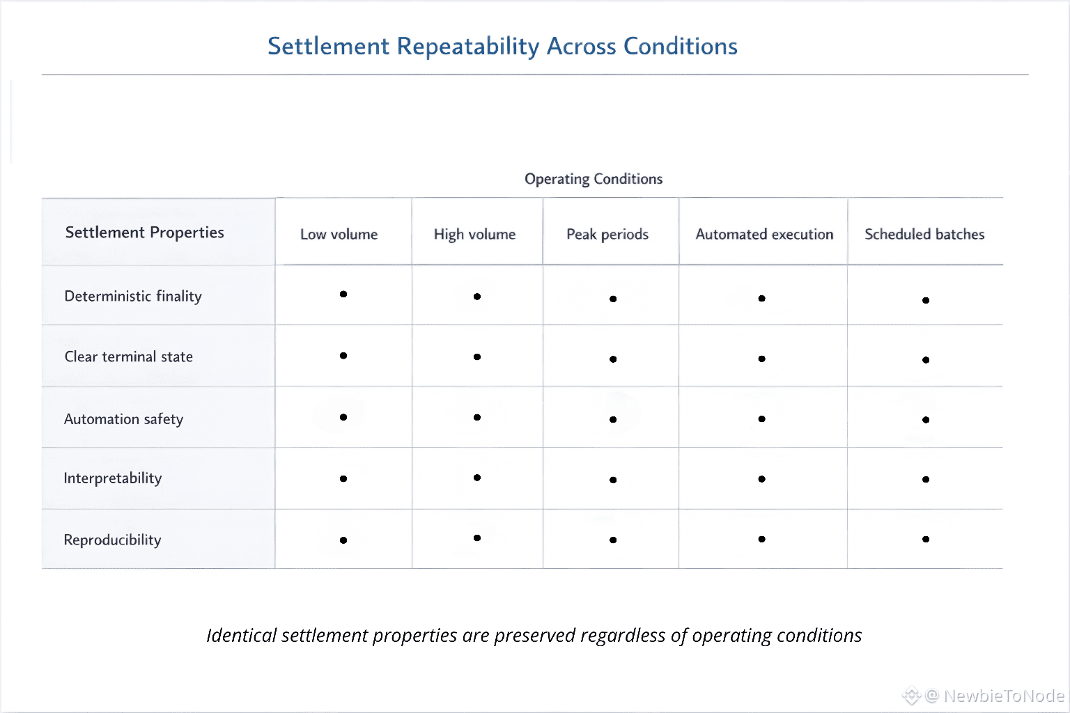 As usage grows, systems that lack repeatable behavior tend to accumulate compensating mechanisms. Additional checks, fallback paths, and manual reviews appear to handle variance. These mechanisms increase operational cost and make systems harder to reason about. By contrast, systems that enforce consistent settlement behavior reduce the need for these layers.