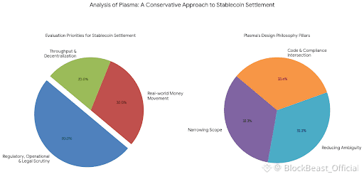 When evaluating a blockchain intended for stablecoin settlement, the first question is rarely about throughput or theoretical decentralization. It is about whether the system behaves predictably under scrutiny—regulatory, operational, and legal—and whether its design choices reflect an understanding of how money actually moves in the real world. Plasma, as described, reads less like an attempt to reinvent financial rails and more like an effort to narrow scope, reduce ambiguity, and accept that stablecoins already sit at the intersection of code and compliance.
