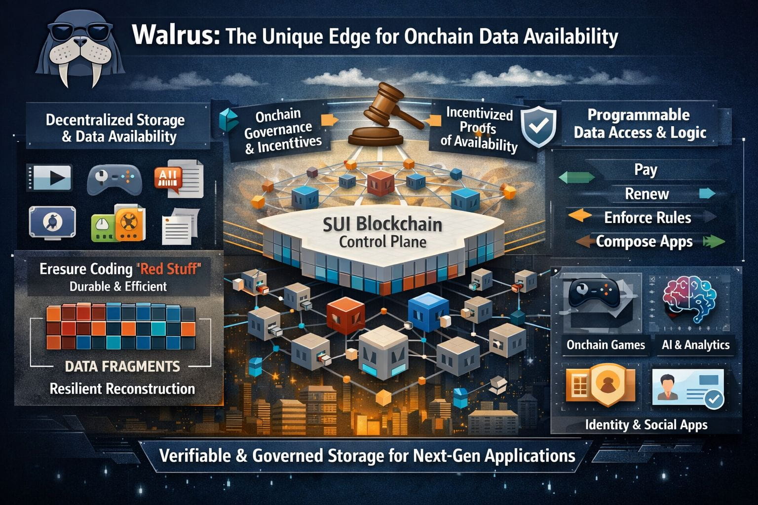 This is where the title really earns its keep. Walrus’s “unique edge” isn’t only that data stays available. It’s that availability and storage behavior are tied to on-chain rules in a way developers can actually use. Walrus uses Sui as a kind of control plane for managing blobs and coordinating incentives, instead of spinning up a separate chain just to orchestrate storage. In practical terms, that opens the door to storage that behaves less like a passive bucket and more like something you can govern: pay for it, renew it, attach rules to it, and compose it with application logic. The bytes don’t become magical. The commitments around those bytes become enforceable.
