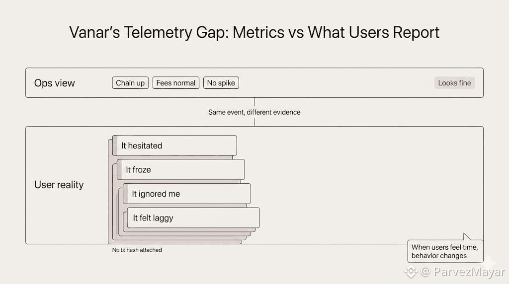 Grafana is calm. Support isn't. Tickets don't say "failed transaction'. They say "it hesitated'. "it froze", "it ignored me". No hashes attached. Just a description of a moment that felt wrong. That's the only telemetry you get from a non-crypto user.