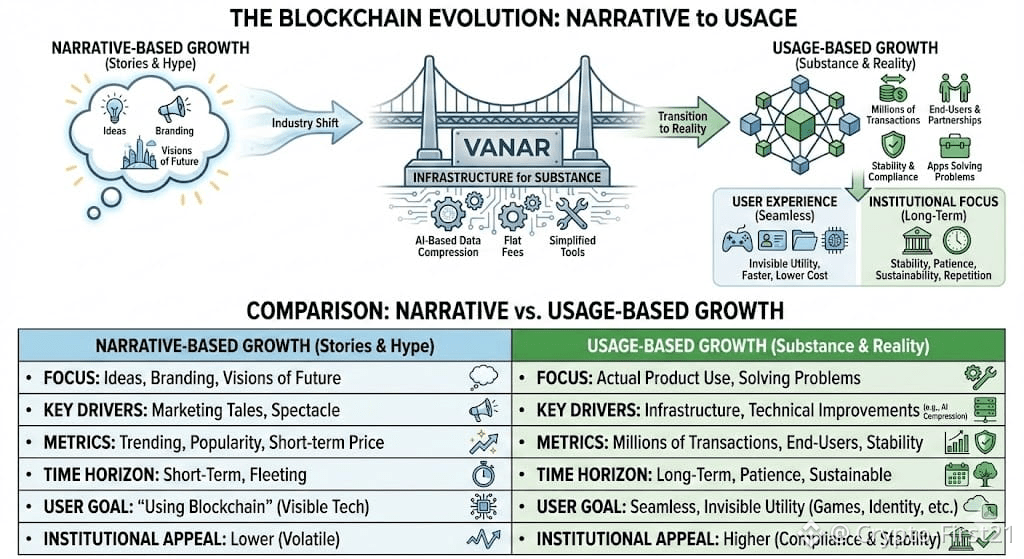The blockchain space has historically lived more on the strength of tales than it has lived on the strength of reality. Indeed, more often than not, what has ended up moving the space more than anything else was not so much what was possible but rather what was being said or promised. However, these are slowly becoming different times. And Vanar is right at the heart of the change from a world centered more around narratives to a world centered more around actions. The latter is a world of usage driven growth.