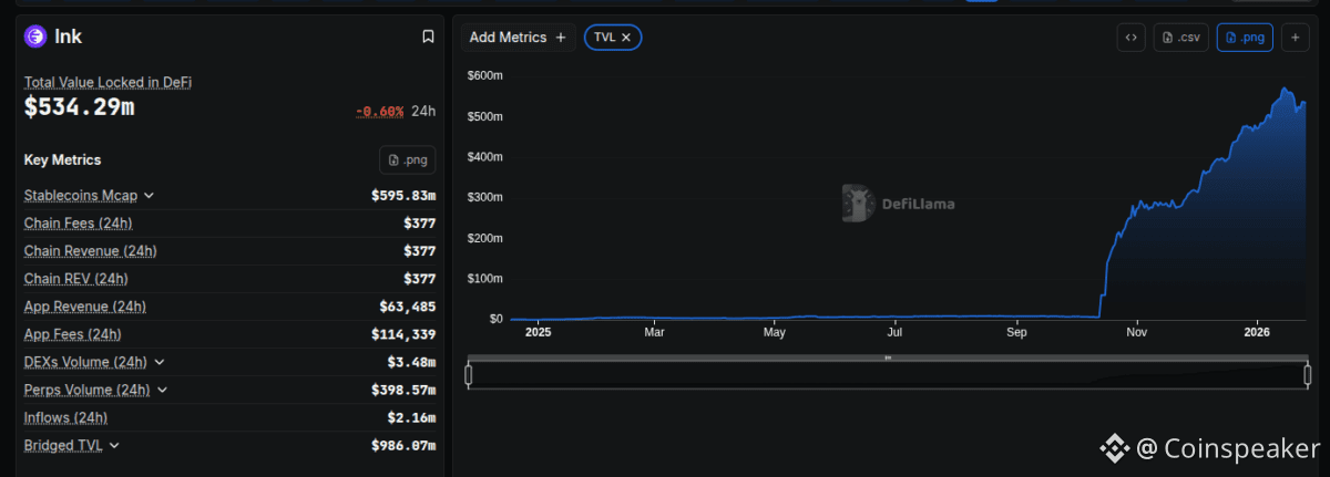 Ink DeFi data as of January 26, 2026 | Source: DeFiLlama