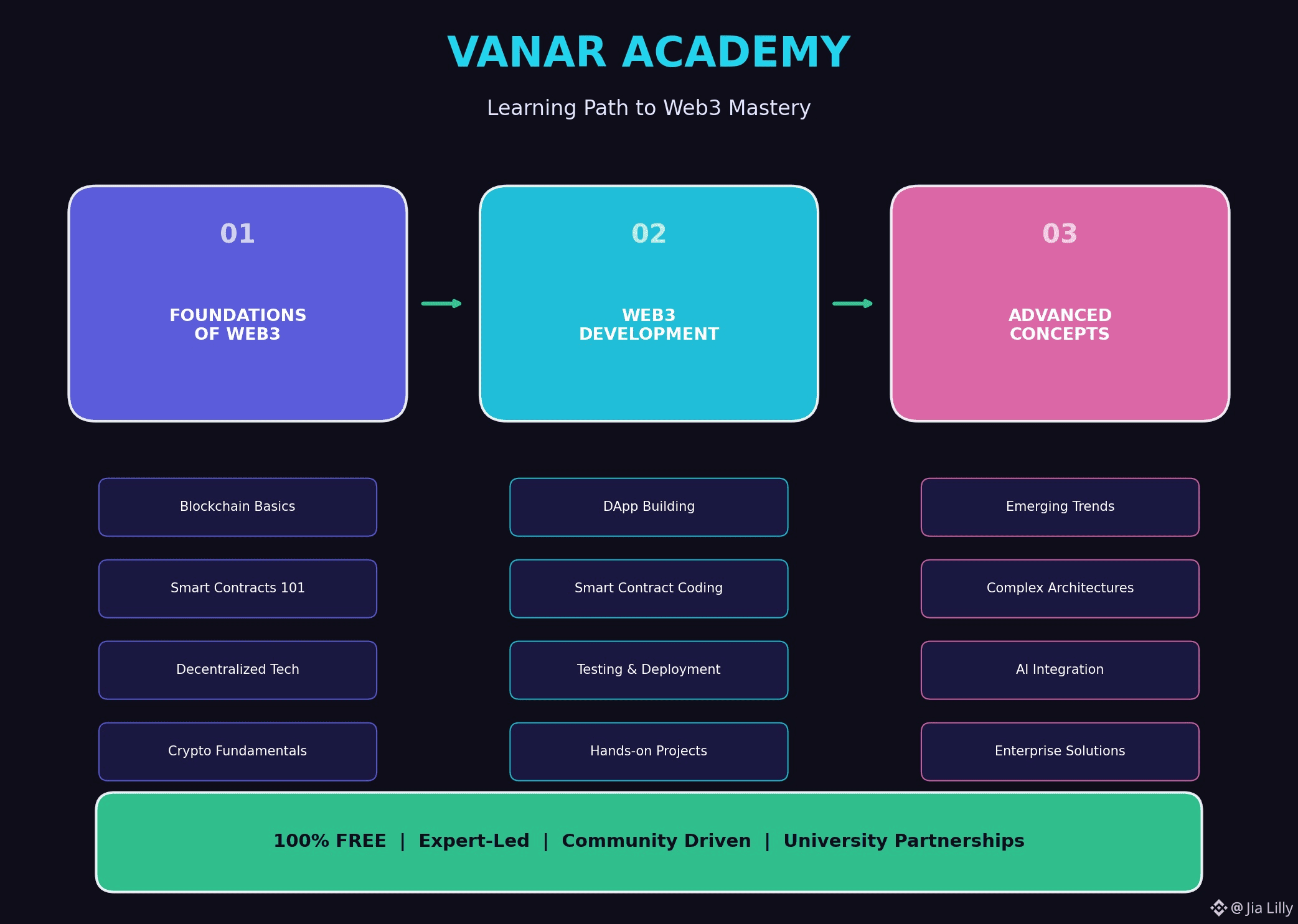 Built by a pioneering Layer 1 blockchain solution with over five years of experience working alongside top global brands, Vanar Academy represents a new approach to Web3 education. The platform targets both web developers looking to transition into blockchain development and Web3 enthusiasts seeking structured pathways to deepen their understanding.
