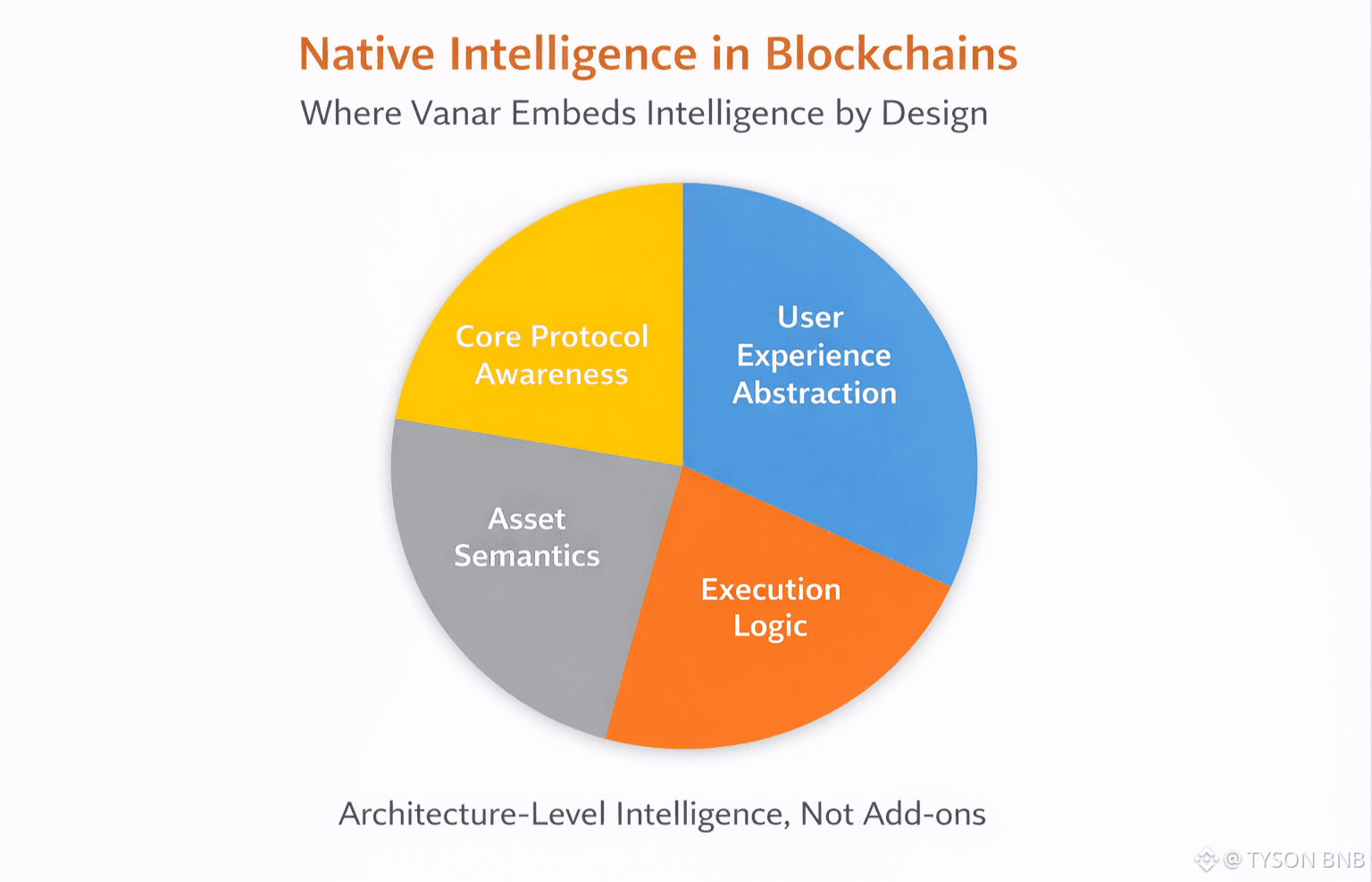 The phrase “native intelligence” sounds like marketing at first glance, but in blockchain architecture it points to something much deeper than AI buzzwords or smart automation. It asks a foundational question: should intelligence live on top of a blockchain as an add-on, or should it be woven directly into the chain’s core design? This is the question Vanar places at the center of its architecture, and understanding it requires unlearning how most blockchains have been built over the last decade.