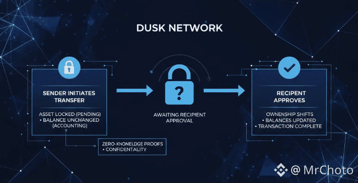 In order to address a crucial issue in privacy-preserving finance—how to move assets safely without compromising balance integrity or disclosing sensitive information—Dusk Network presents an approval-based transfer mechanism. Dusk makes sure that transferred assets stay correctly accounted for in the sender's balance until the recipient expressly confirms the transaction, as opposed to immediately concluding transfers as soon as they are started.