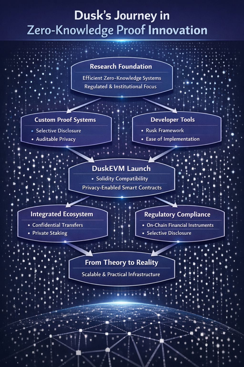 From research papers to live infrastructure Dusk’s journey demonstrates that zero knowledge innovation succeeds when theory is paired with usability. By grounding cryptographic advances in developer friendly tools and real world regulatory needs Dusk has moved zero knowledge proofs from the lab into production environments. As privacy becomes a core requirement for institutional blockchain adoption Dusk stands as an example of how long term research can translate into scalable and practical decentralized systems.