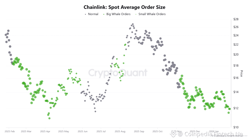 Historically, large entities tend to scale positions during drawdowns rather than during strength, and the current LINK price chart appears to reflect that pattern.