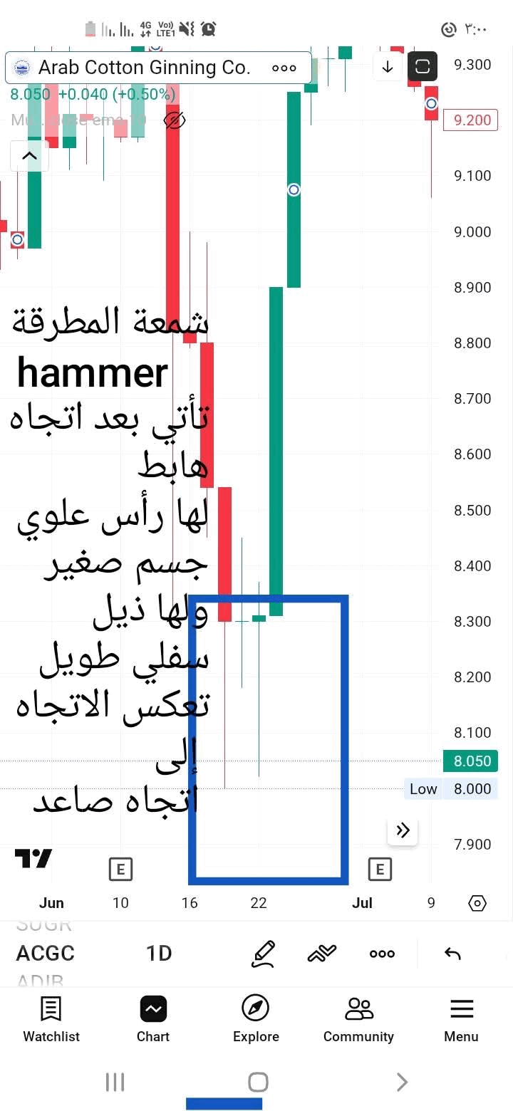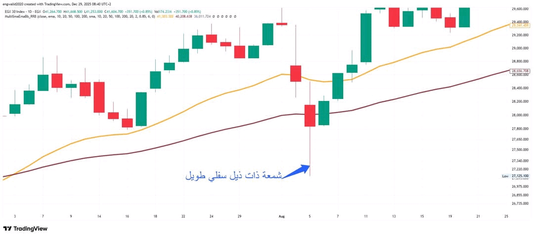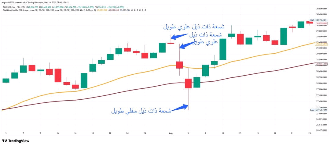 * **Technical Interpretation:** This indicates a bearish rejection. If a long lower tail appears at a strong support level, it means the market is preparing to rise, and the Hammer candlestick pattern is the most common example of this.