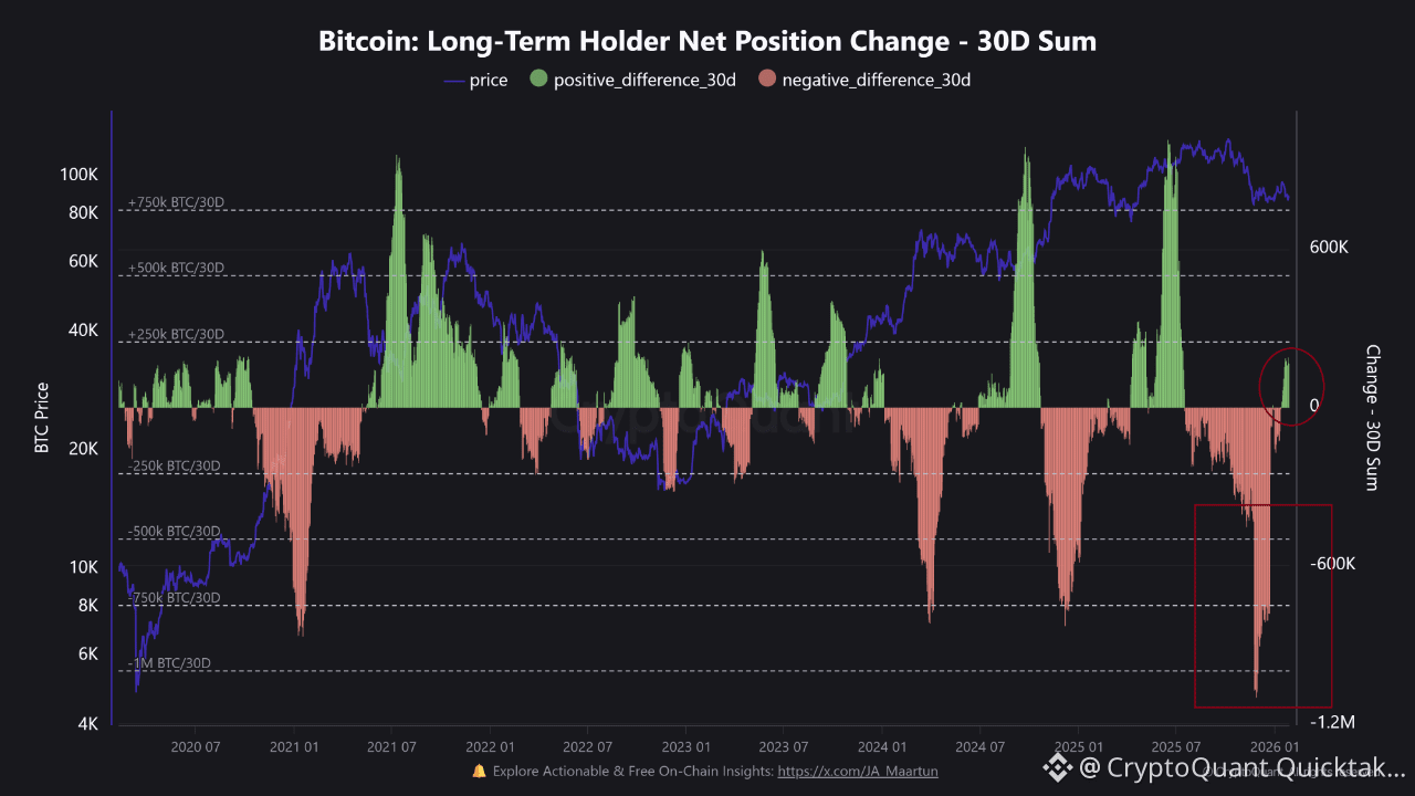 (Bitcoin Long-Term Holder Net Position Change – 30D Sum)